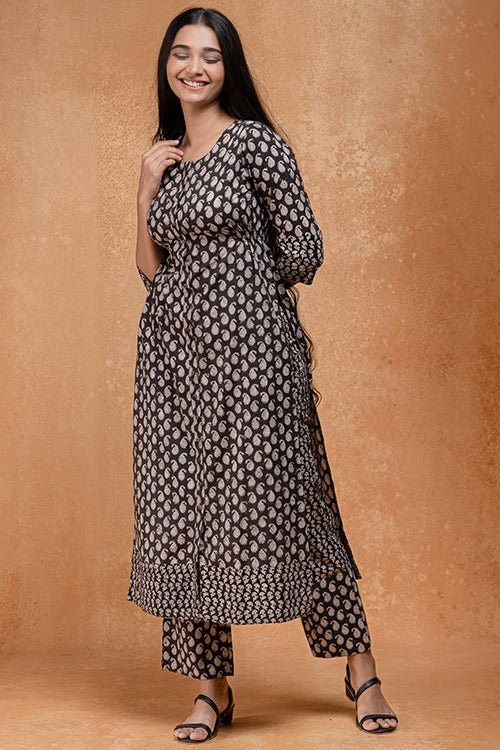 Okhai "Black Forest" Handblock Printed Pure Cotton Kurta Pant Set