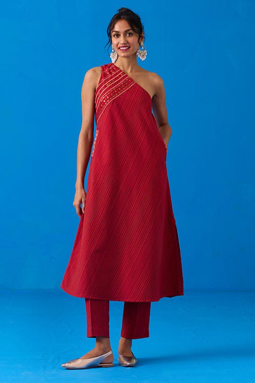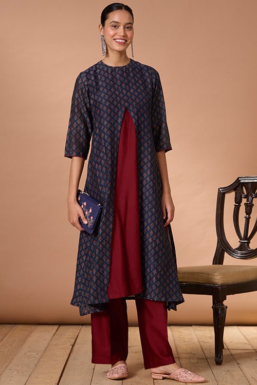 Okhai "Carnelian" Handblock Printed Chanderi Silk Ajrakh Kurta Pant Set