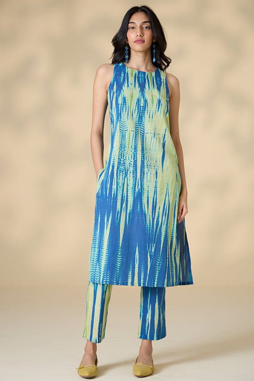 Okhai "Capri Shores" Tie-and-Dye Pure Cotton Blue Green Kurta Pant Set