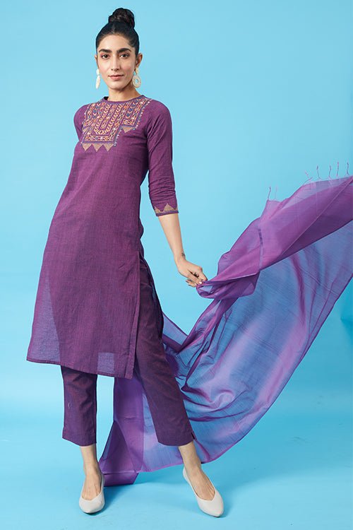 Okhai 'Imperial' Kutch Embroidered Kurta Pant Dupatta Set