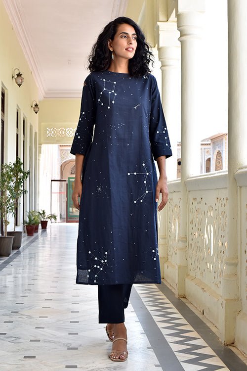 Okhai 'Midnight Sky' Hand Embroidered Kurta Pant Set