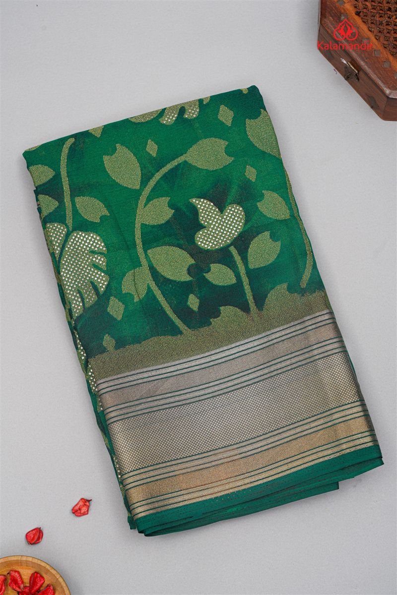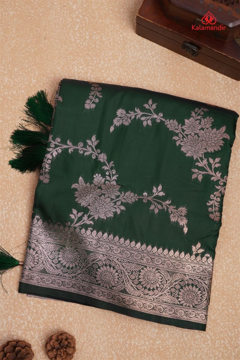 DARK GREEN and GOLD FLORAL JAAL SILK Saree with FANCY