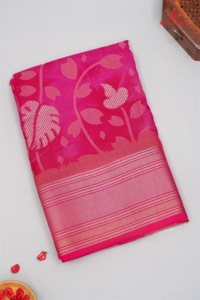 DARK PINK and GOLD BRASSO GEORGETTE Saree with FANCY