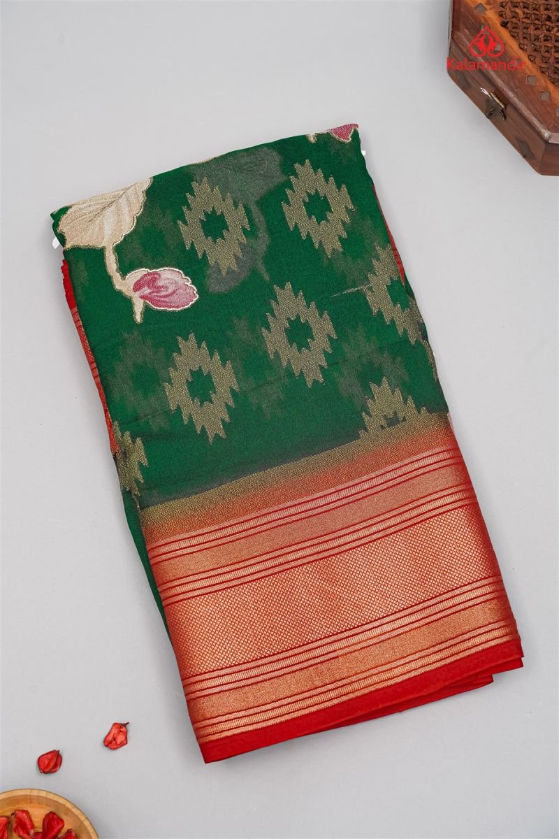DARK GREEN and RED BRASSO GEORGETTE Saree with FANCY
