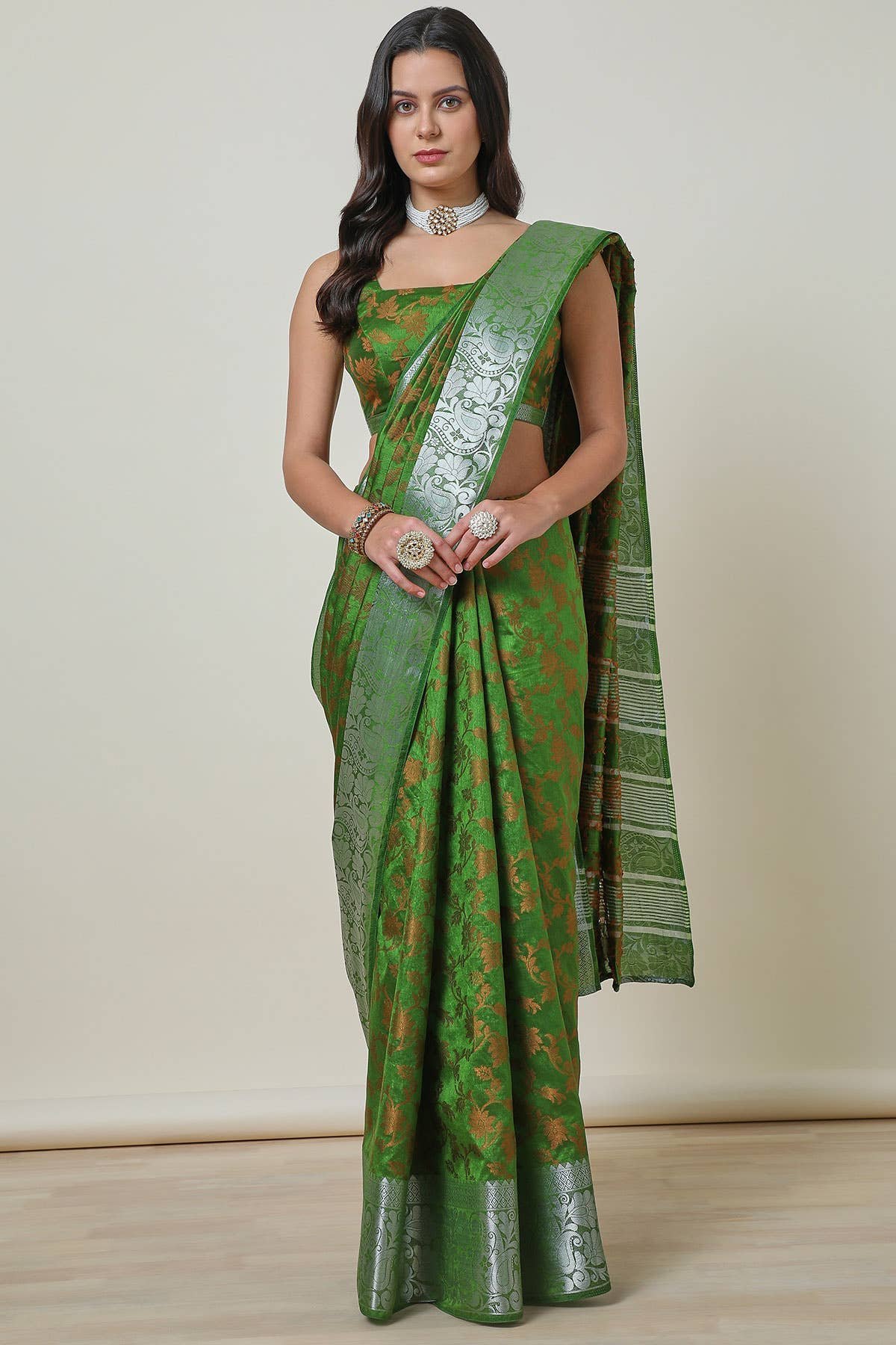 Green Art Silk Floral Woven Design Saree
