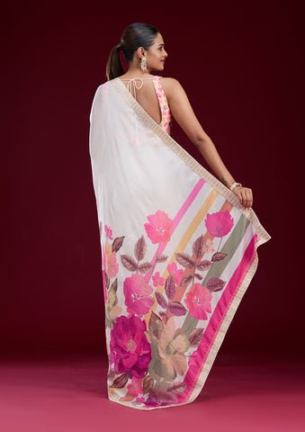 Lavender Georgette Embroidered Saree With Stone Work