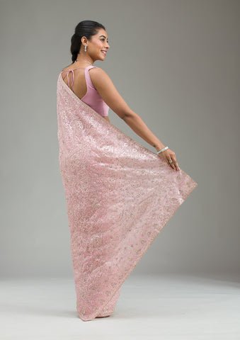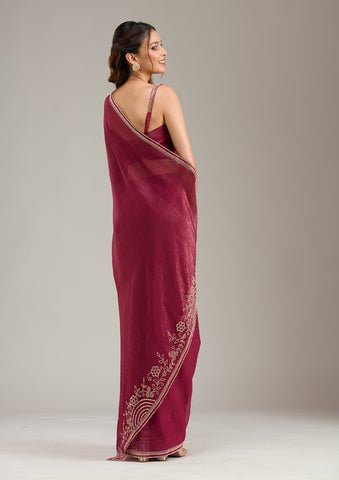 Purple Tussar Silk Saree With Floral Print And Zari Woven Designs