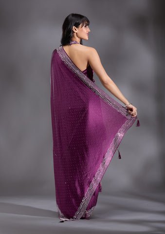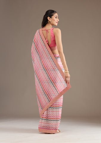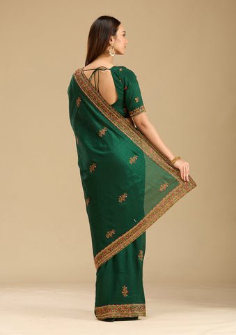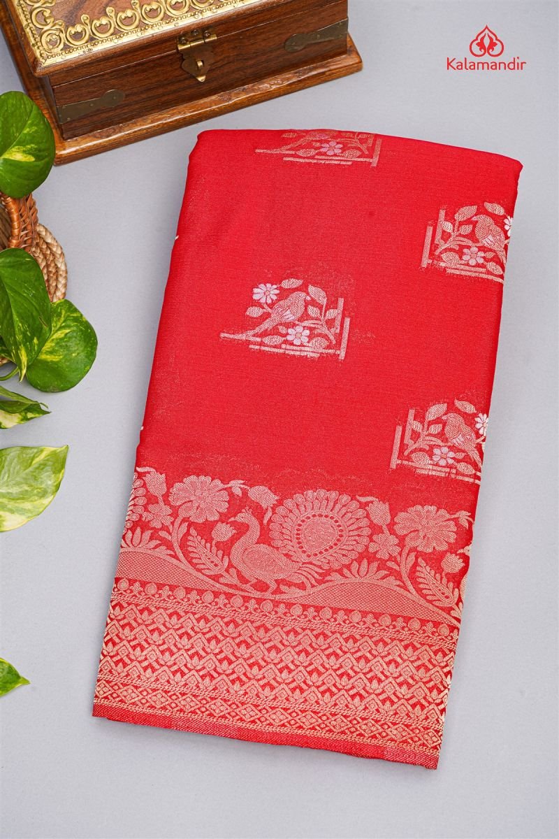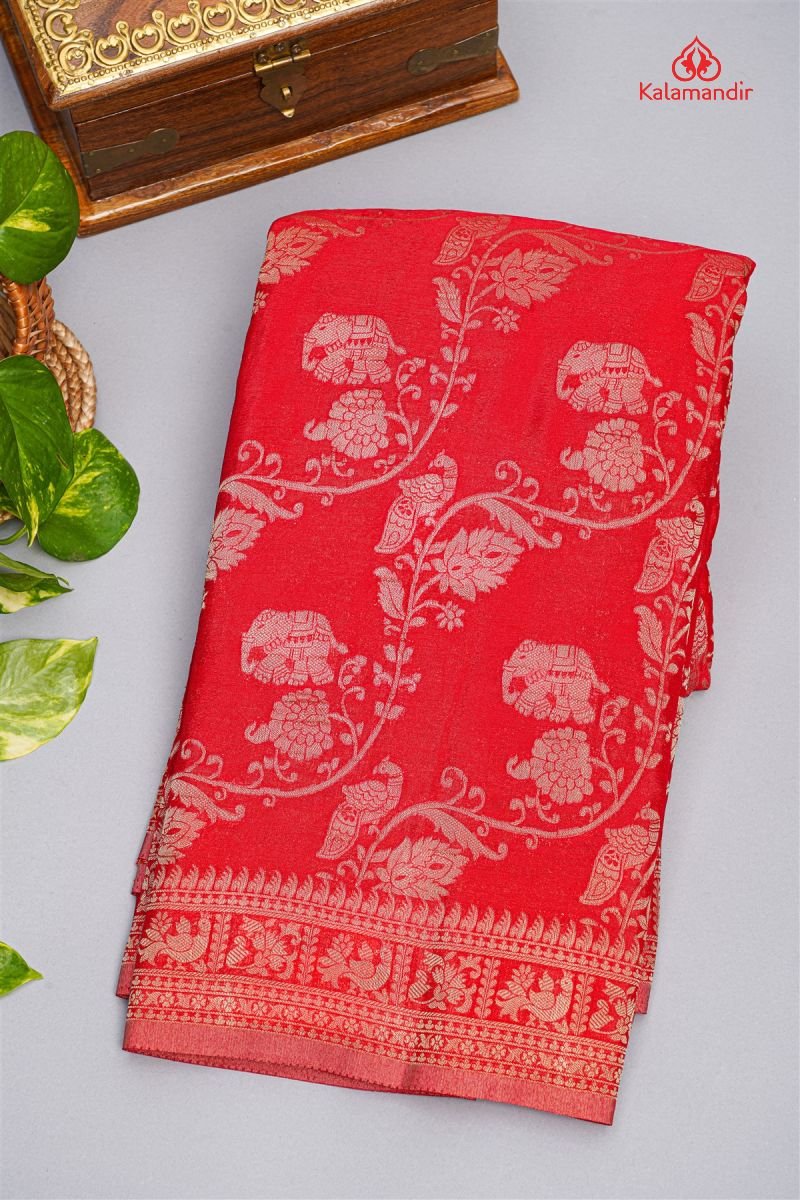 RED and GOLD MOTIFS CHIFFON Saree with BANARASI