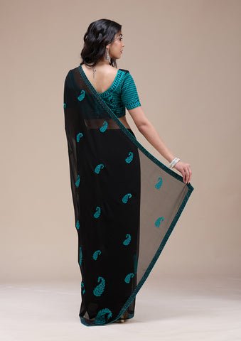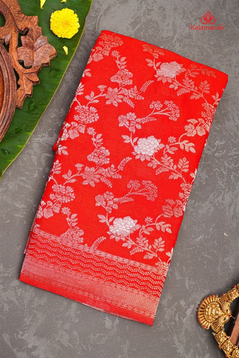 RED and GOLD FLORAL JAAL GEORGETTE Saree with BANARASI