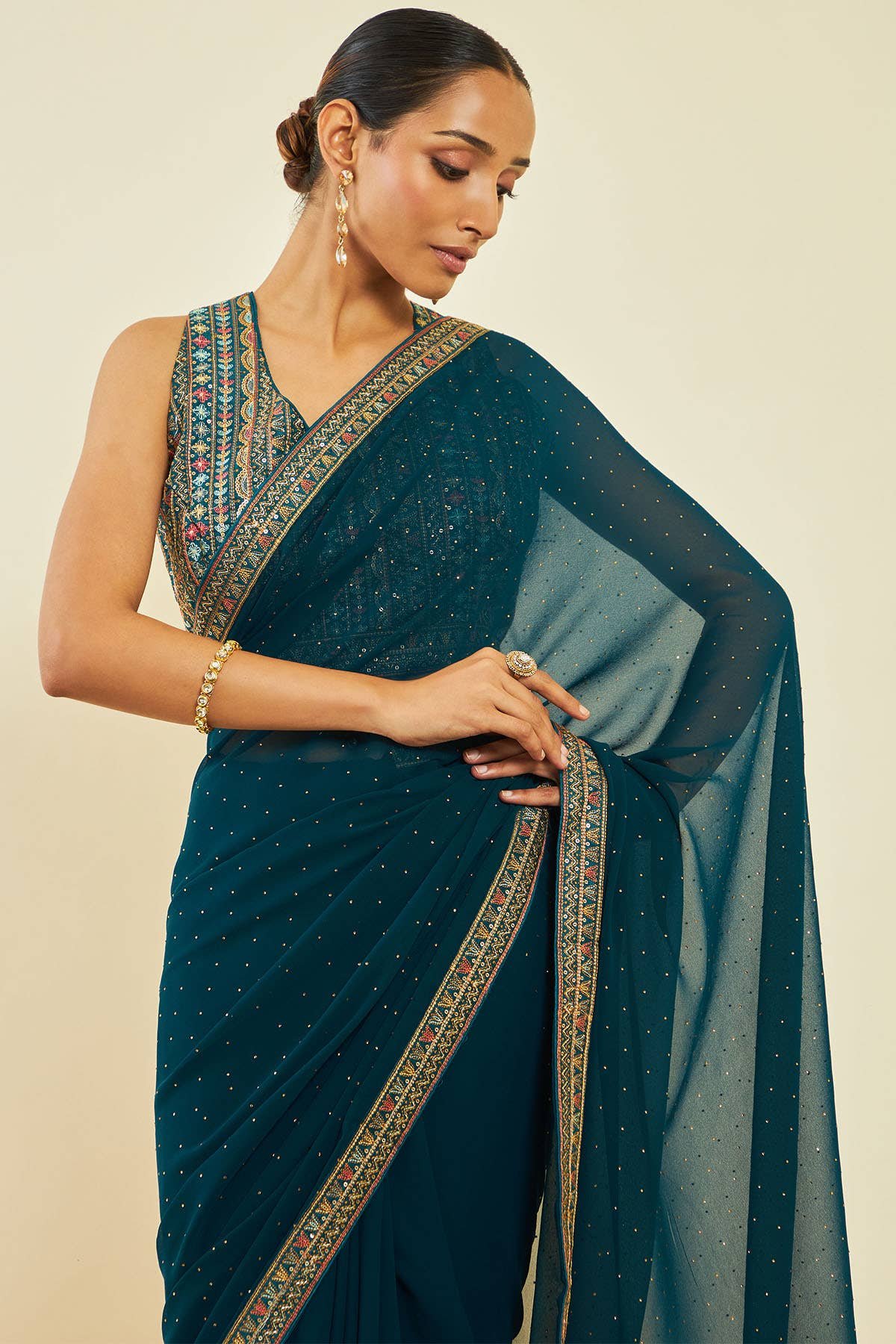 Turquoise Blue Georgette Saree With Stones And Embroidery