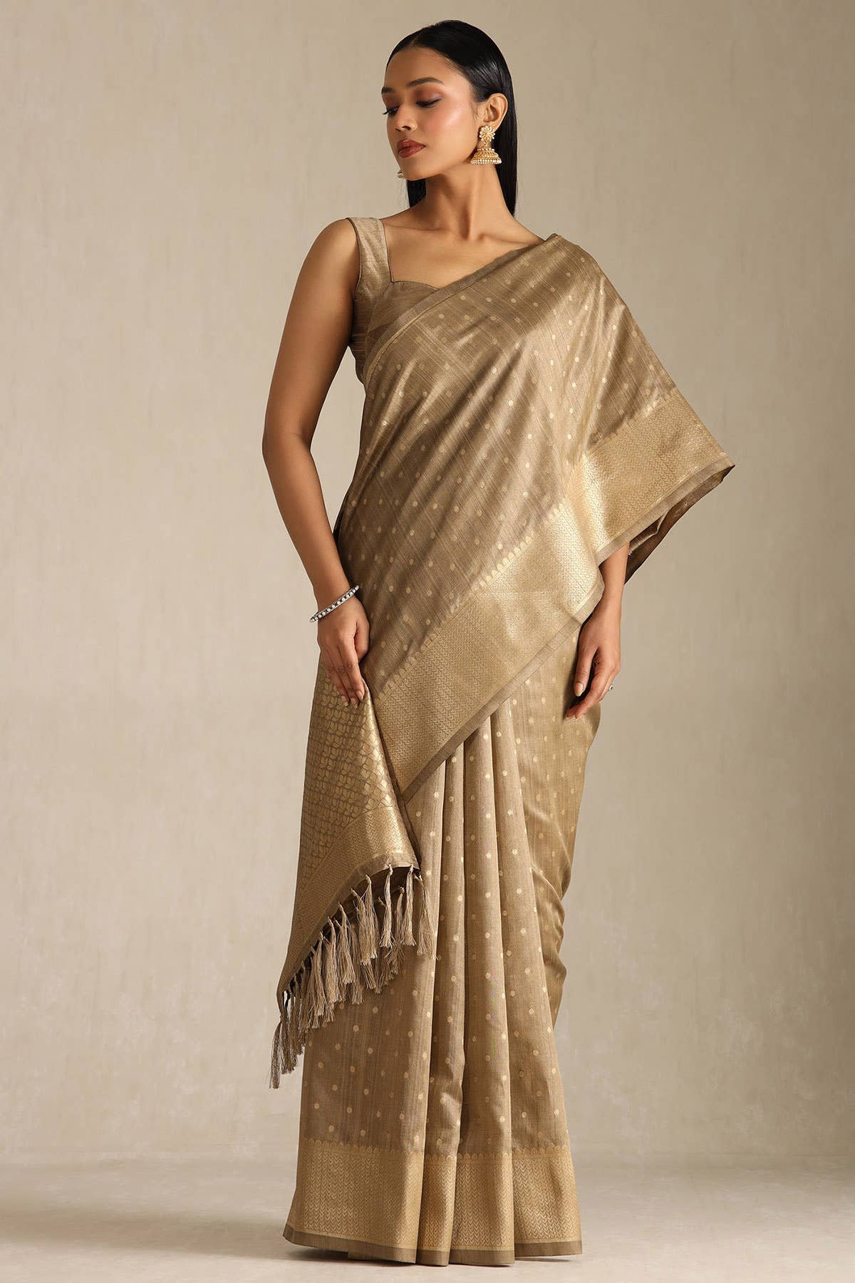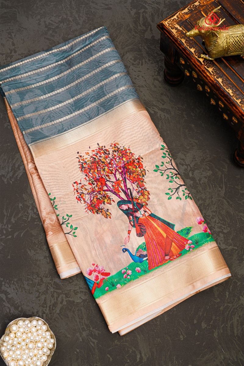 BEIGE and GREY MULTI DESIGN SILK Saree with FANCY