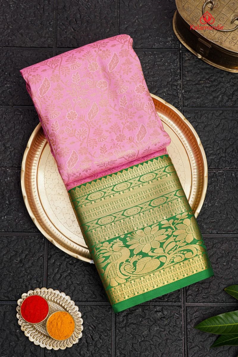 BABY PINK and GREEN FLORAL JAAL SILK Saree with SEMI KANCHIPURAM