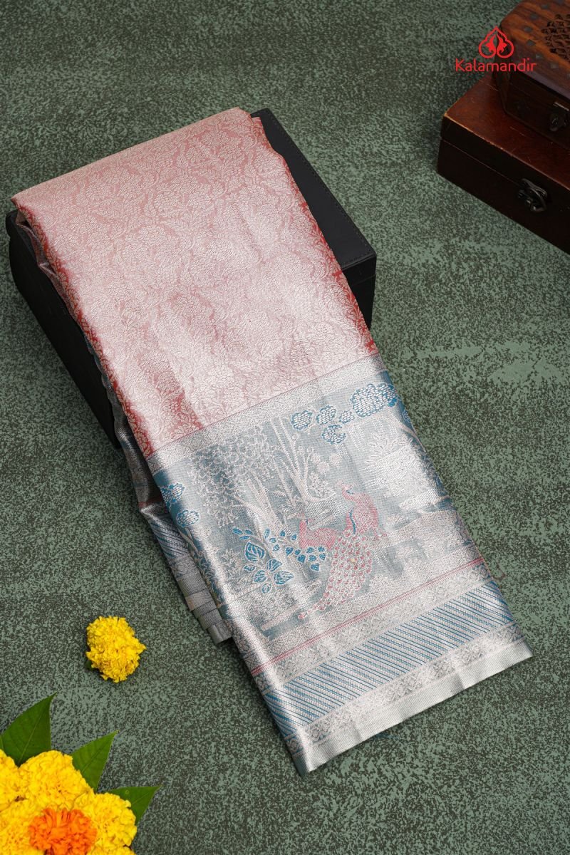 LIGHT MAROON and RAMA BLUE FLORAL JAAL SILK BLEND Saree with SEMI PATTU