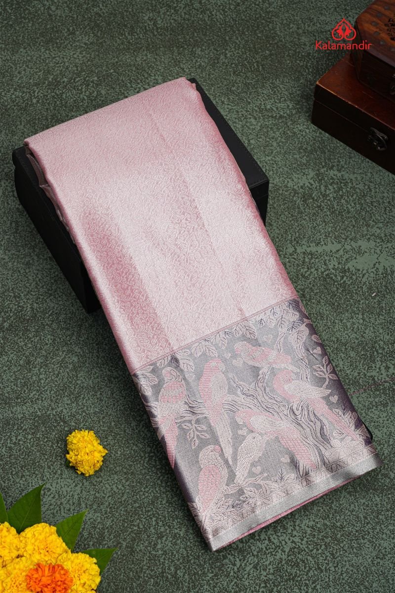 LIGHT PINK and GREY BUTTIS SILK BLEND Saree with SEMI PATTU