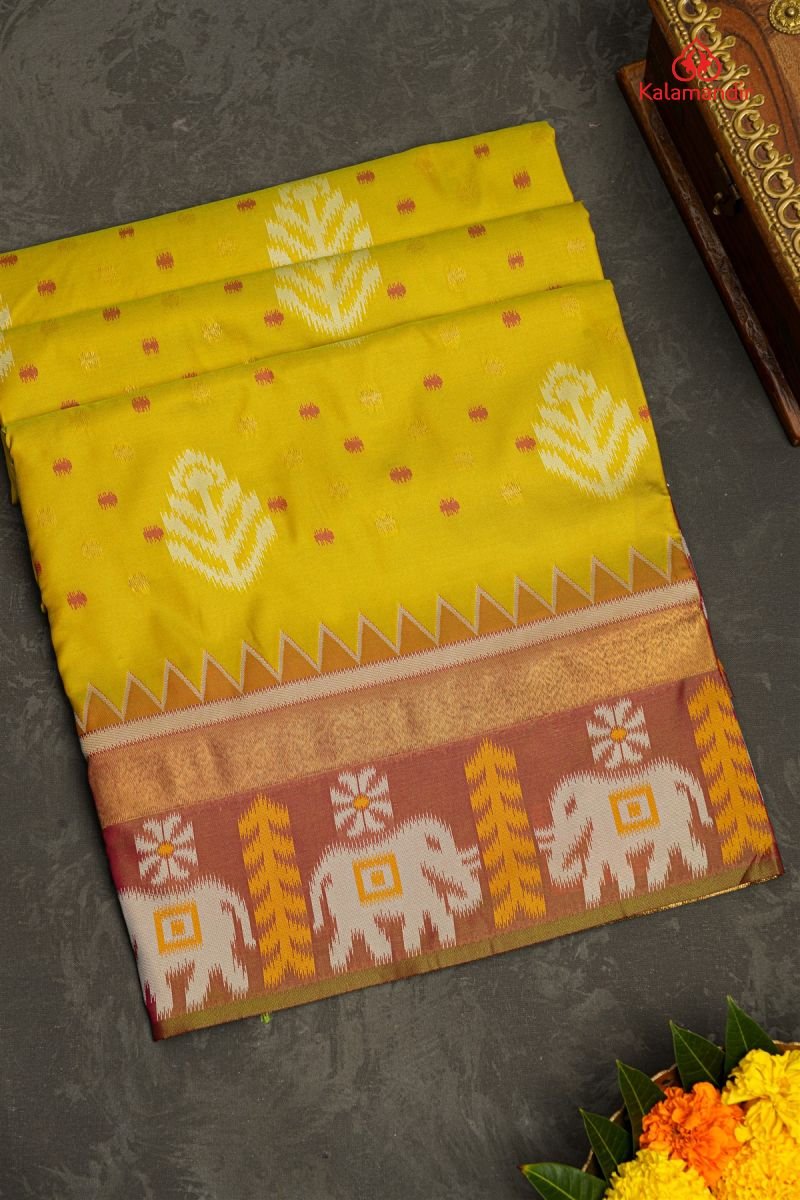 LIME GREEN and DUAL SHADE BUTTIS SILK BLEND Saree with POCHAMPALLY