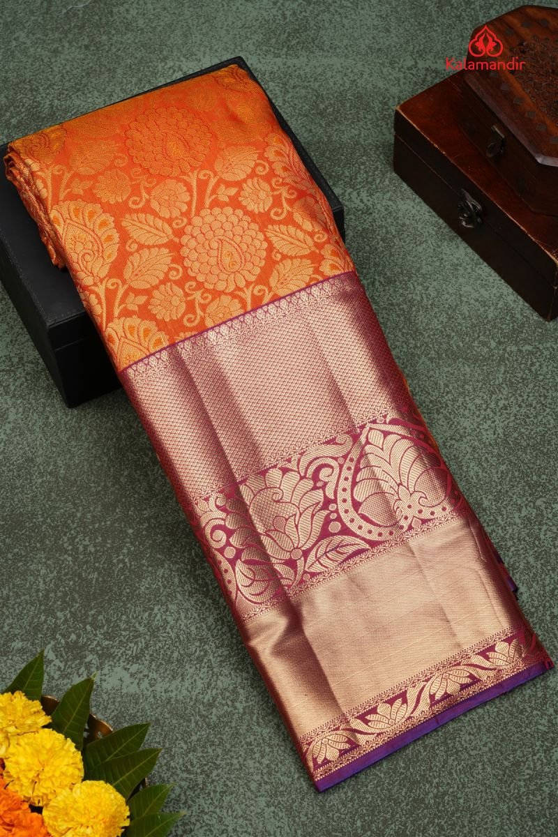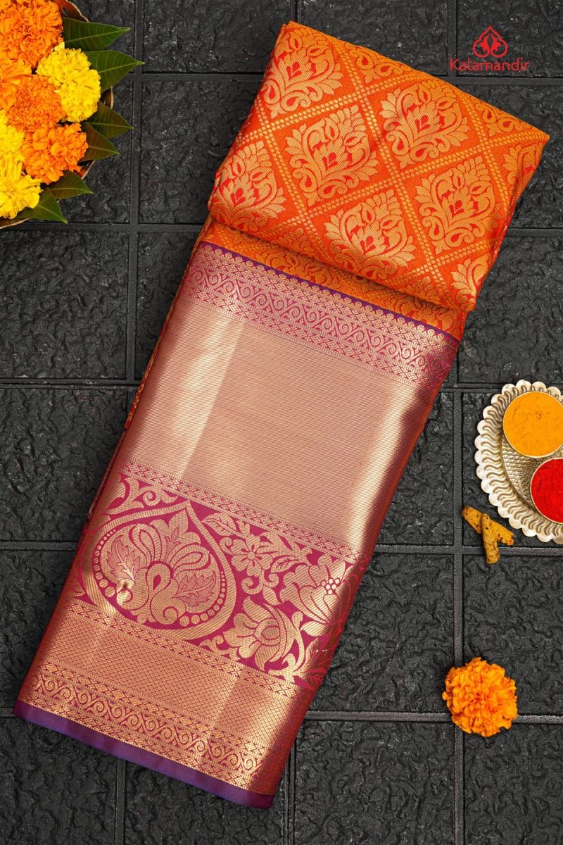 MARRON and GREEN FLORAL JAAL SILK Saree with SEMI KANCHIPURAM