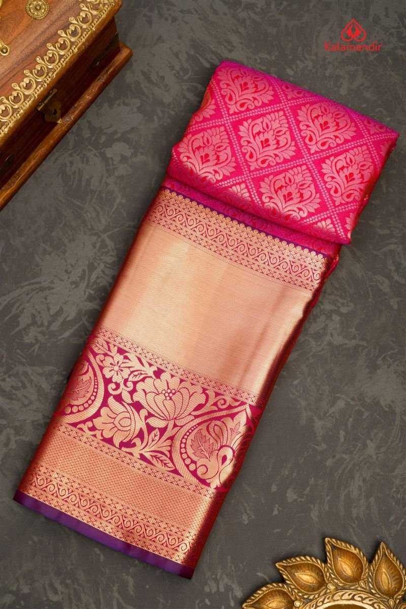 PINK and DARK MAGENTA BUTTIS SILK BLEND Saree with SEMI PATTU