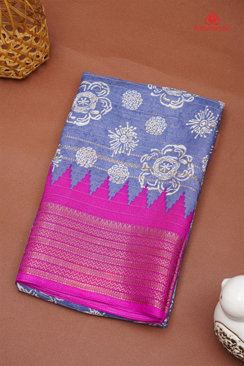 BLUE VIOLET and DARK MEGANTA FLORAL BUTTIS GEORGETTE Saree with FANCY