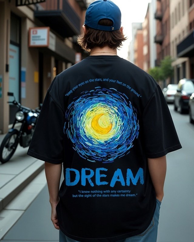 Men's Black Dream Graphic Printed Oversized T-shirt