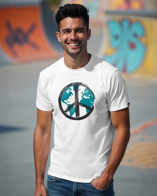Men's White World Peace Graphic Printed T-shirt