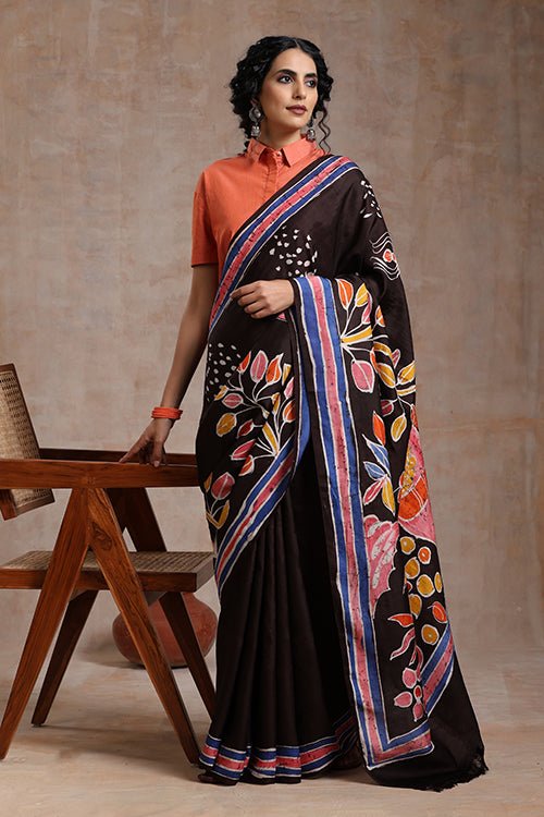 Blue and Red Color Pure Cotton Printed Handloom Saree