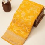 Elegant Banarasi Silk Saree crafted from pure silk with intricate zari work. Perfect for weddings, this saree includes an unstitched blouse piece for a complete look. Handwoven in Varanasi.
