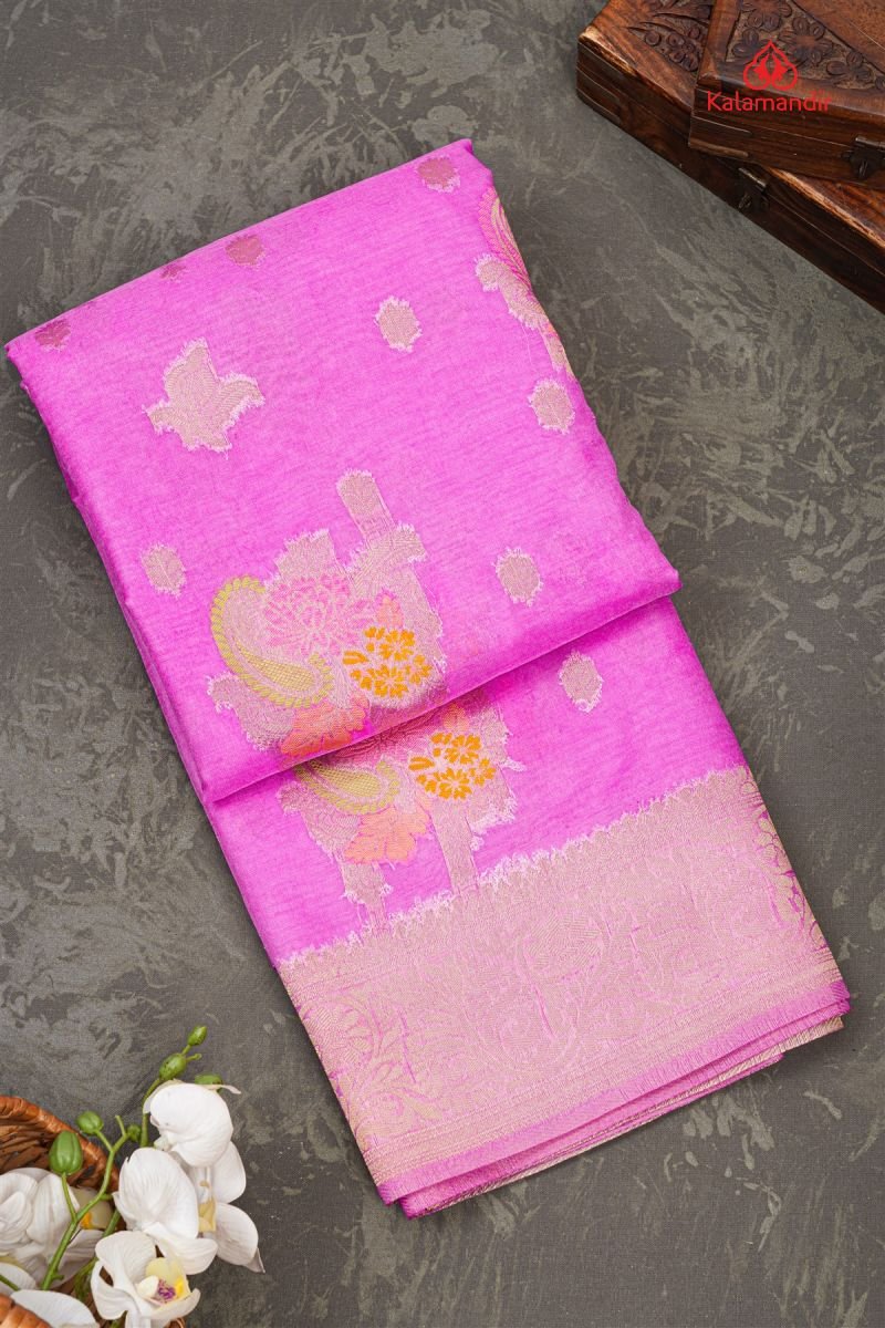LIGHT PURPLE and GOLD MOTIFS KORA Saree with BANARASI