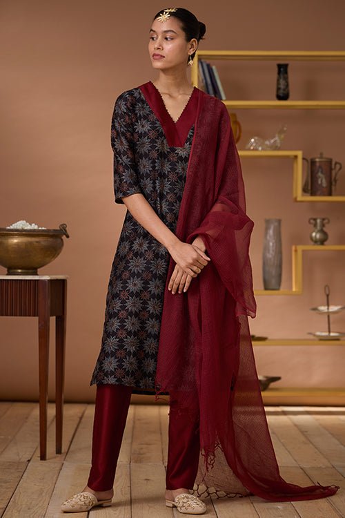 Okhai “Carnelian” Handblock Printed Chanderi Silk Ajrakh Kurta Pant Set