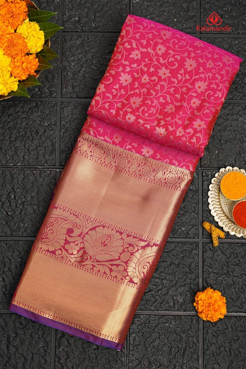 PINK and BLUE FLORAL JAAL SILK BLEND Saree with SEMI PATTU