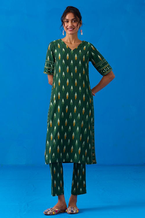 Okhai "Kaveri" Hand-Embroidered Mirrorwork Pure Cotton Ikkat Kurta