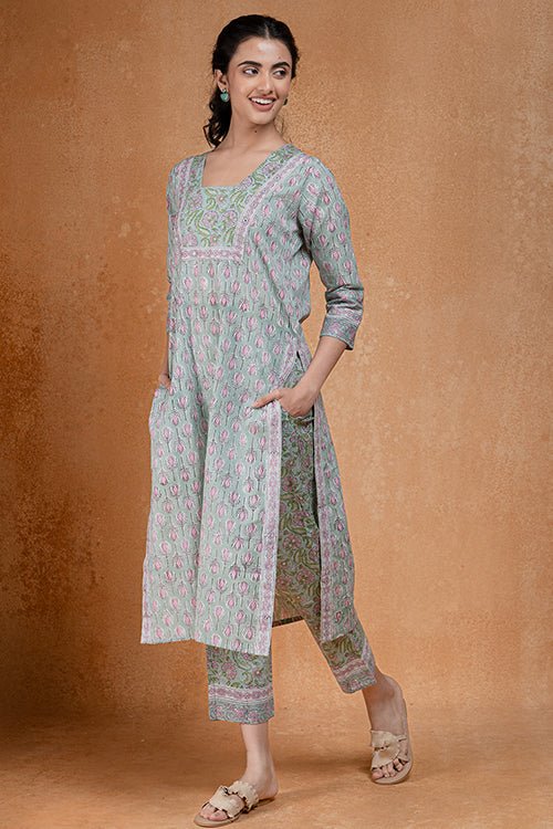 Okhai "Fig" Suf Embroidered Pure Cotton Kurta Pant Set