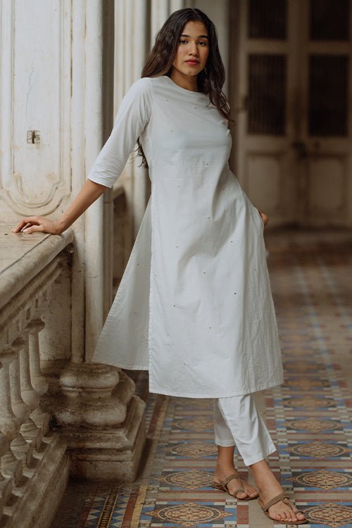 Okhai 'Swirl' Pure Cotton Hand Embroidered Kurta Pant Set