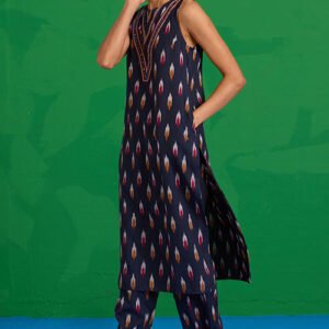 Okhai Morning Glory Hand-Embroidered Tikki and Mirror work Ikkat Pure Cotton Kurta